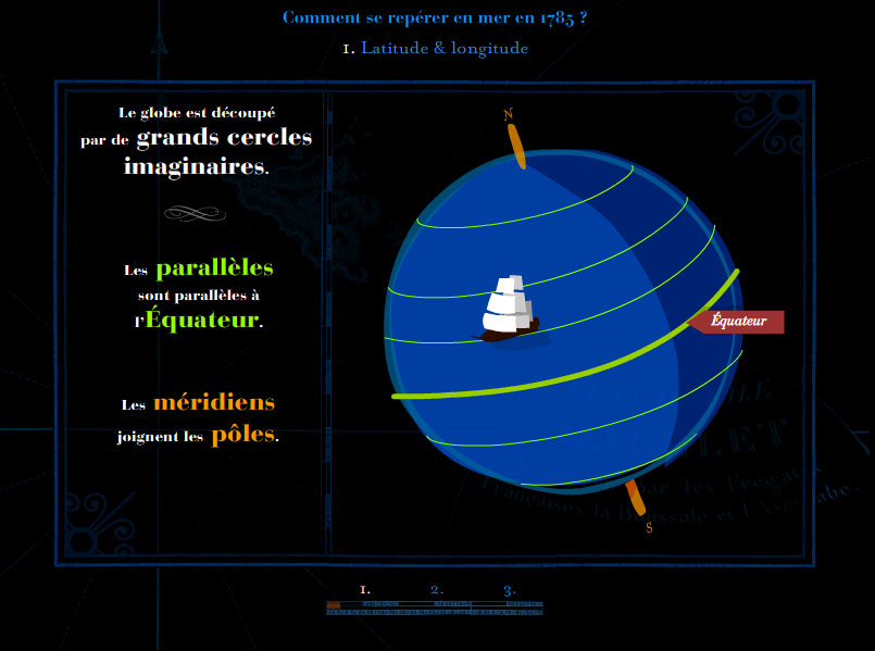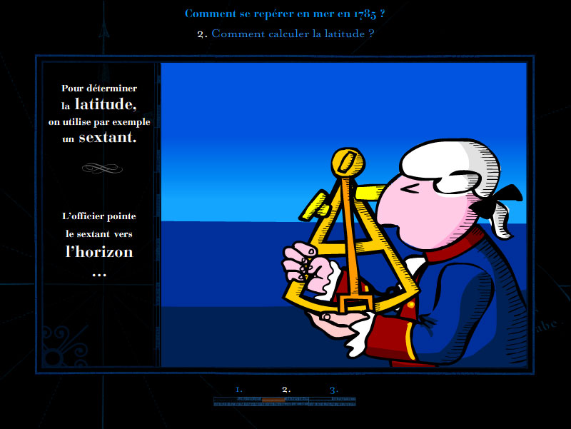 « Comment se repérer en mer en 1785 » est un film d’animation qui explique de manière simple et pédagogique les techniques de mesure de la longitude et latitude à l’époque de Lapérouse.